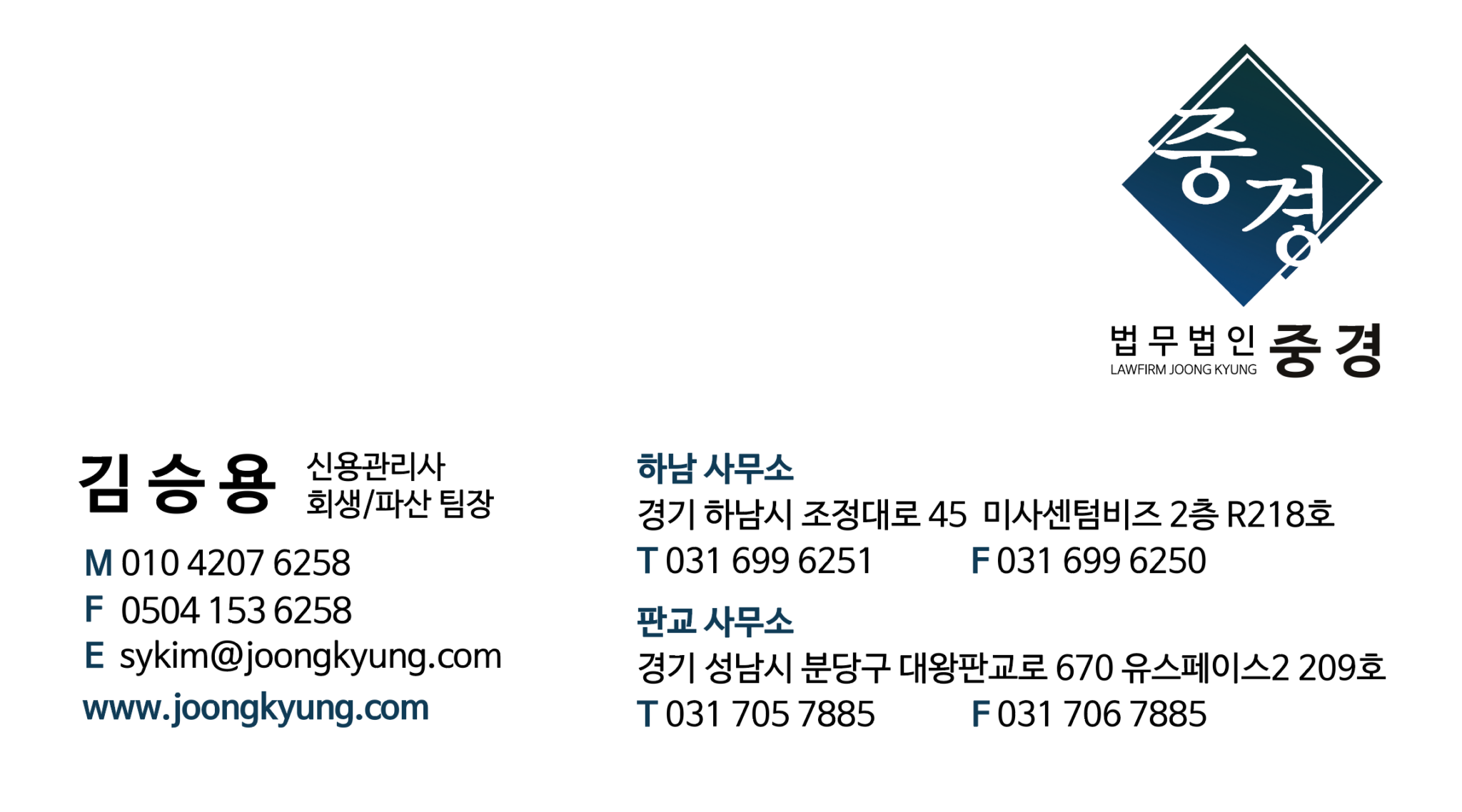 법무법인 중경 법인,개인 도산 팀장
